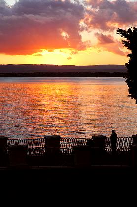 夕暮れなら、島の西側、パピルスが生えている≪アレトゥーザの泉≫付近がお勧め。お天気がよければ、イオニア海のこんなきれいな夕景に出会えるかも。付近にはカフェも何軒かあるので、ちょっと休憩するのもよし。