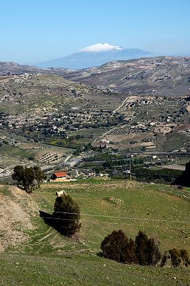 標高3,323mのエトナ山はお天気がいいと、100kmは離れている内陸部の思いがけない所からも顔を覗かせて、シチリア東岸にあるカターニアやタオルミーナ方角の目安になります。