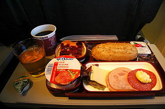 その後のニュルンベルク→シチリア島のカターニアはボーイング737−800で2時間ほど。格安航空便にしては思いがけなく画像のような充実した機内食でした。ヨーグルトの後ろに見えるのはさくらんぼケーキ。こちらもスナックやアルコール飲料は有料なので、ご注意。余談ですが、ウイスキーのように見えるのはアップル・ジュースです。念のため。(^○^)- 旅行時期