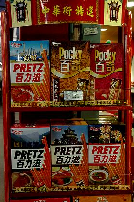 国際線空港である浦東空港に、数年前からあるご当地プリッツ、コロン。最近はポッキーも2種類出始めました。