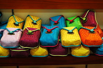 これはそのうちの一つの手提げ袋。物を入れて持ち歩くと言うより、ファッションとしてのちょっとしたアクセントになるサイズ。色柄も各種あるので、お好きなものをどうぞ。一つ198元のお値段です。- 旅行時期