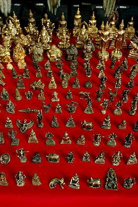 ほんの指先ほどのサイズのミニチュアの仏像。お店の人にどの仏像にどんな御利益があるのか聞いてから買ってみるのもいいお土産になります。サイズによってお値段が異なりますが、言い値は数10バーツ程度から。