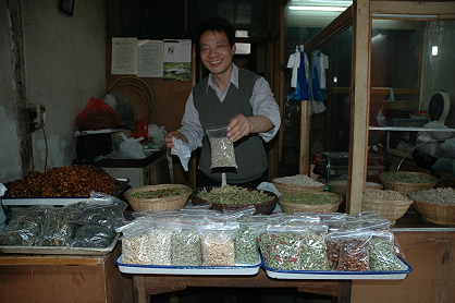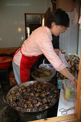 上海郊外にある水郷≪朱家角≫には枝豆を加工した≪燻豆≫のお店がずらりと並んでいます。ここしばらく味付けの種類も増えて、お菓子代わりの甘い物、お酒のつまみになる辛党向けの物などさまざま。