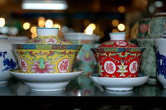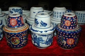 先にご紹介したような花鳥市場で見かける、温酒杯という酒器。形は日本の徳利とは違いますが、お酒を湯煎で温める物です。蓋のように見えるのは盃。高さ15センチほど。