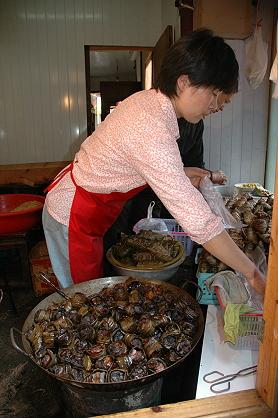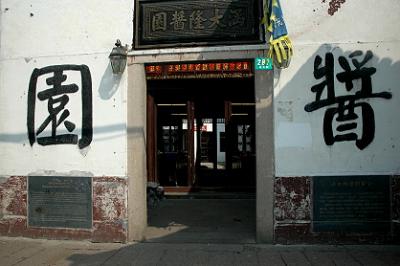 上海郊外にある水郷≪朱家角≫の水路に面した一角に≪醤園≫という、画像のようなお店があります。そこで売られているのは、小さい瓶詰めの漬物各種。季節には栗の甘露煮なども出ます。
