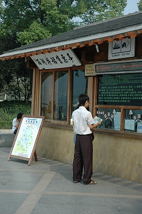 例として、このチケット売り場の遊覧の内容は湖の島、湖心亭と三潭印月を訪れる、というもので2時間ほど。料金は島の入場料も含めて45元。