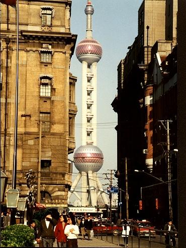 写真は外灘(バンド)近くから見た東方明珠塔- 旅行時期
