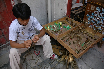 上海市内にある水郷≪朱家角≫の通りでは、色々な民芸品も売られています。これもそのうちの一つの草細工。