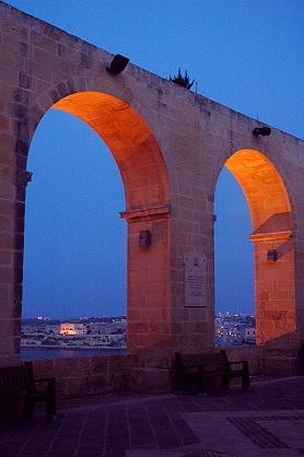 グランド・ハーバーを見下ろす高台の上の小さい公園。普段の港の眺めもいいし、夕暮れからはライトアップされます。グランド・ハーバー対岸の夜景もきれい。
