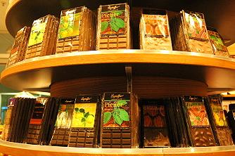 そこで売られているチョコレートはお馴染みのメーカーの物もありますが、LEYSIEFFERと言うメーカーの物はちょっと変り種で、胡椒入りや生姜入り…といった物。100gの物が2.8ユーロ。それぞれにカカオ含有量の違う物があるので、お試しを。