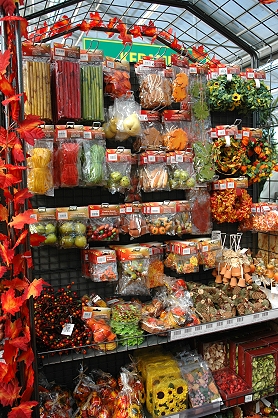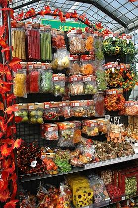 クリスマス・リースだけではなく、季節に合わせた手作りリース用品も建材ショップには豊富。取り付ける装飾品も数ユーロで、自分の好みに合わせてあれこれ選べます。これもある程度の大きさの町のはずれには必ずあるOBI、HAGEBAUMARKT、MARKTKAUF…などの建材ショップを紹介してもらって行ってみましょう。