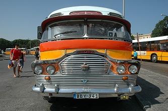 画像のような黄色とオレンジ色ですが、車種がさまざま。このようにクラシックな形の物から、車椅子にも対応した低床バスまで、同じ形をした物が無いと言ってもいいほど。車好きな方はヴァレッタのバス・ターミナルに行くだけで楽しめます。ちなみに、私が見た車椅子対応低床バスは中国の江蘇省製でした。