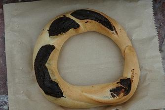 表面に模様のようにはみ出している黒い中身はココア、糖蜜、オレンジ系ピールの入ったほろ苦い生地。