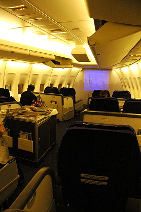 ボックス型の方は個別のスクリーンもあり、座席も完全に水平に倒せて、知らない人と隣り合わせても寝姿が丸見えにはならないので安心。