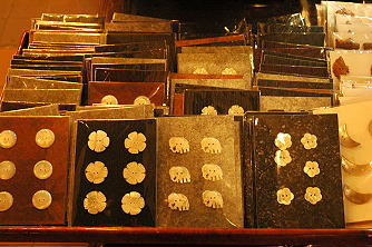 服やインテリア雑貨を仕立てるためにシルク生地を買ったら、それに合わせた材質や形、大きさのボタンも購入しましょう。材質はやはり、タイを思わせる貝や木の物がアジアン・チック。