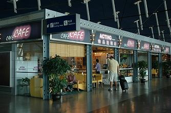 食堂を兼ねたカフェが何軒かありますが、時間帯によっては混み合っています。ゲート12−16、33,34側はゲート数が少なく静かなので、このACTINGというカフェで待ち合わせの方が落ち着けます。