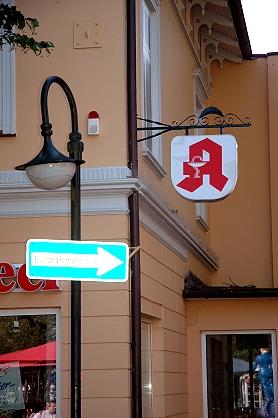 処方箋を必要としない薬でも薬局まで行きましょう。目印はどこでもこの薬局(APOTHEKE)の頭文字Aをデザイン化した赤い看板です。