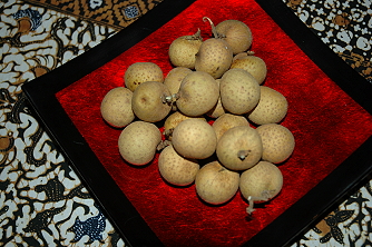 竜眼が出回る季節になりました。小粒のイチゴほどの大きさの実で、パリッとした皮の中にブドウのような半透明の果肉が入っています。皮はつるりと剥けるので食べやすいですが、中に黒い大きい種が入っているので、歯にご注意。