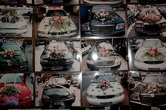 近しい間柄の人なら、花市場でこんな見本から選んで、車を飾る花を贈るのもいいかもしれません。