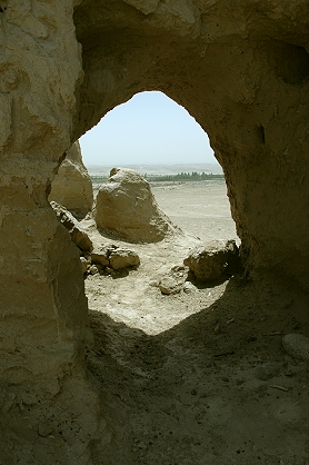 市街から西に20数キロ。半砂漠の中なので、車はそばまで行けません。簡単なゲートがある入口で降り、徒歩かロバ車に乗って見に行くことになります。暑くない時期であれば徒歩でも大丈夫そうですが、単調な道なのでロバ車に乗ってみるのもいいと思います。入場料10元、ロバ車往復10元、カメラ持ち込み料10元。