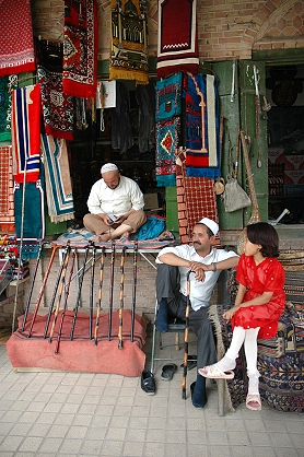 カシュガルの香妃墓そばの駐車場に、ここと同じ看板を出している土産物屋があって言い値も低め。和田(ホータン)の後カシュガルに行く人は、ここでは参考のため見るだけにしておいた方がいいかも。