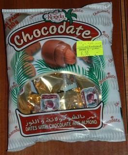 ナツメヤシの実を使ったお菓子はいろいろ出回っていますが、包装も味も良かったのはLA RONDAというメーカーのCHOCODATE。市内のスーパーで買えます。種を取った乾燥ナツメヤシの実にアーモンドを詰めて、チョコレートでコーティングしてあります。
