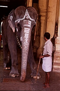 ミーナークシ寺院には象使いに連れられた象がやって来ます。(毎日かどうかはわかりません)