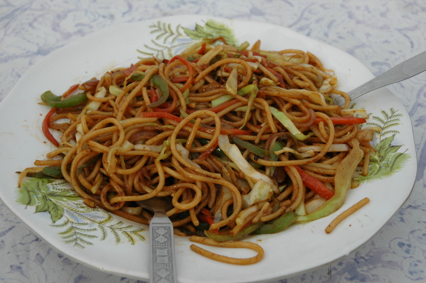 露店のようなお店では見かけませんが、ちょっとしたカフェなどではメニューにCHOW MEINと書かれた焼きそばに出会えます。インドの食に飽きて来た時はちょうどいいと思います。キャベツ、タマネギ、ピーマンなどの野菜入りのヴェジ・フード。お店によってお値段は異なりますが、30ルピー位~。