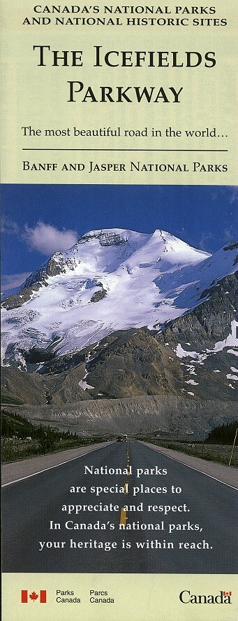 これはバンフのインフォメーションで見つけた地図で、THE ICEFIELDS PARKWAYという名前がついています。