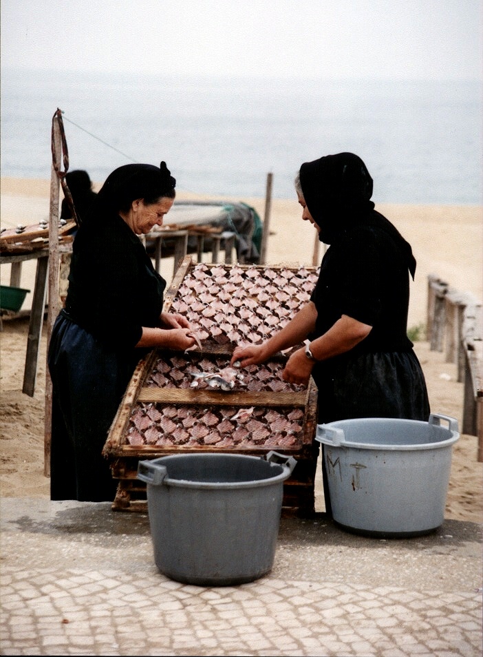 ナザレの浜辺を歩くと、何とアジの開きの干物を作っている民族衣装のおばさんたちが!こういう風景も時代とともに無くなっていくんでしょうか?