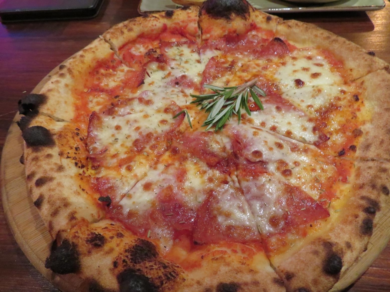 スタッフもフレンドリーな接客だったんですが、ロースト・チキン入りサラダにチキンが入っていなかったり、飲み物のオーダーを取り違えたり、ピリ辛ピザはスパイスが多すぎて激辛だったりとミスが多いなあという感想。