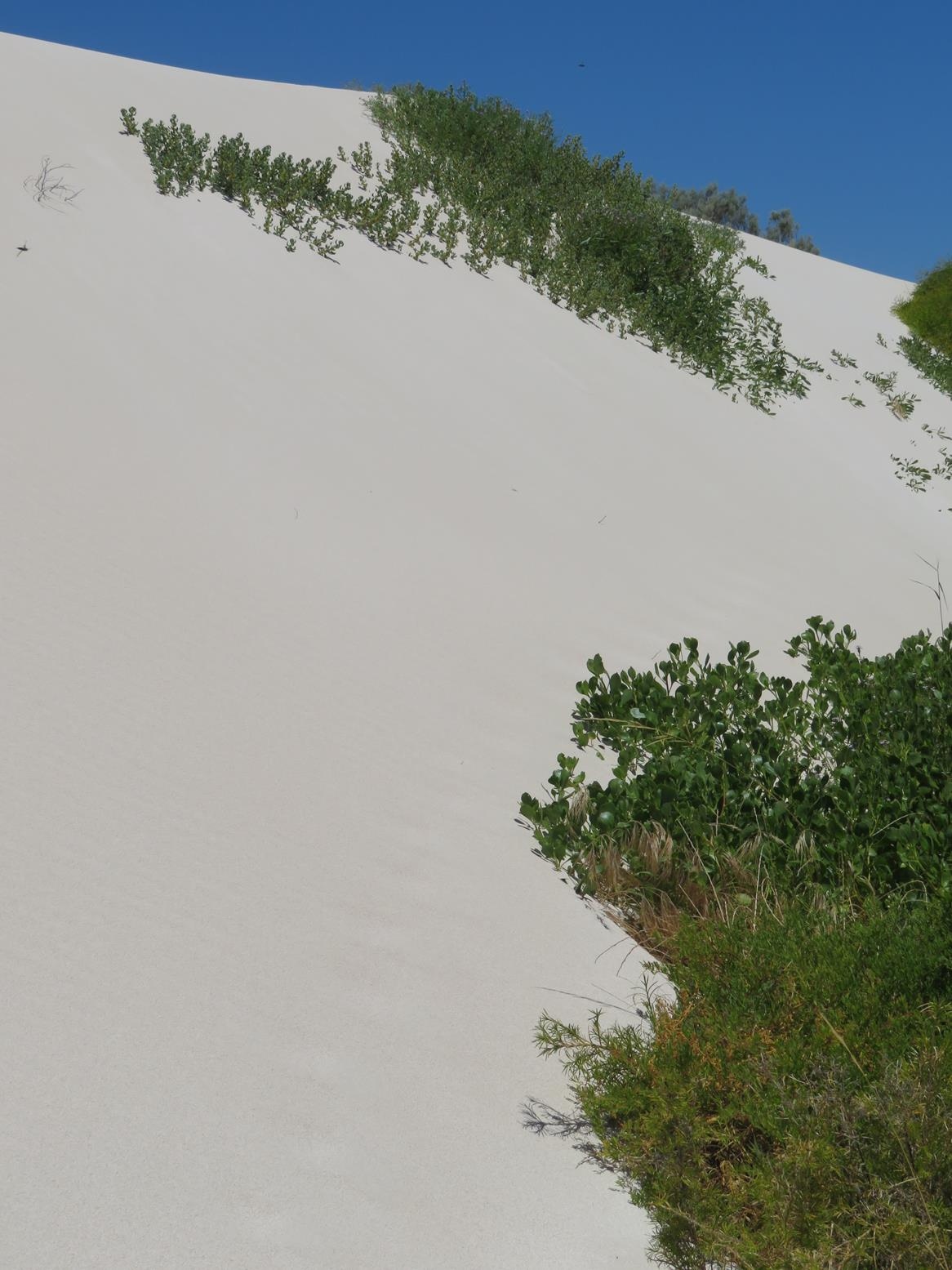 ウェーブロックの上には、風化で出来た窪みに雨水が溜まって苔や草木も生えていたり、岩の脇には雨水を集めた小さなダムもあったのが意外な光景でした。
