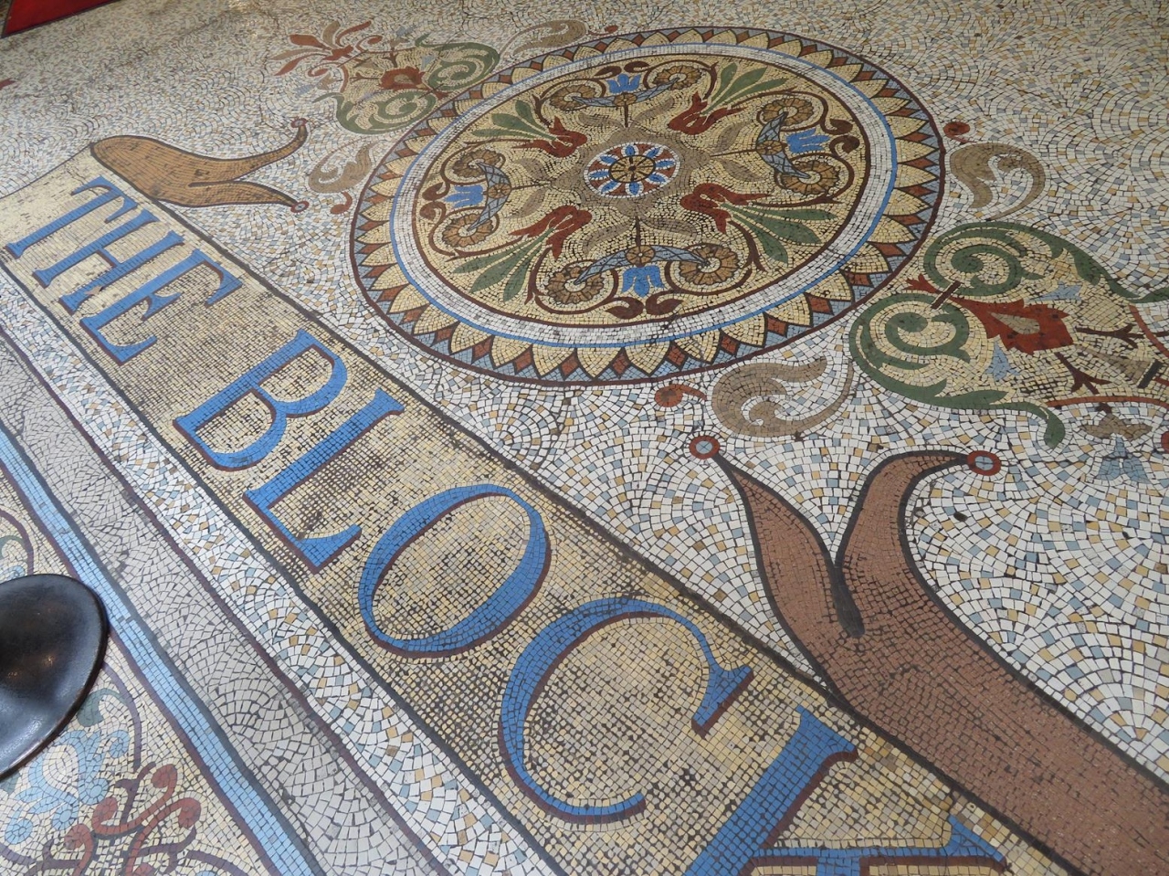 規模的には大きいアーケードとは言えませんが、入り口の床のモザイク模様から始まって、通路の高級感あふれる造りと装飾が魅力的。