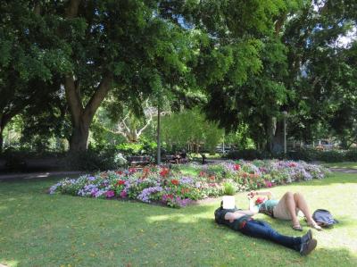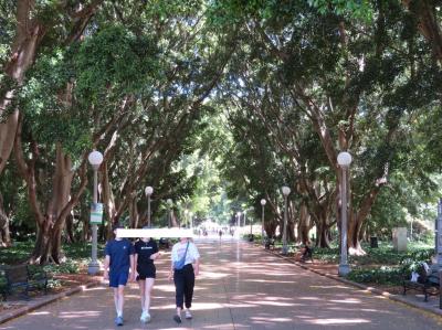 木々や植栽が多く、今回11月下旬には新緑のトンネルを散策や通り抜けで行きかう人、日当たりのいい芝生に寝転んでまどろむ人、ベンチでのんびり新聞を読む人が見られ、シドニー市民の憩いの場になっているのが感じ取れました。