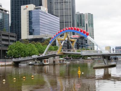 エヴァン・ウォーカー・ブリッジにはその時々のイベント関連の装飾もされて見るだけでも楽しめますが、このあたりのヤラ川両岸にはそれぞれ特徴ある街並みが広がっているので、お天気が良ければ渡りつつ周辺の景色も楽しんでみるのがお勧め。