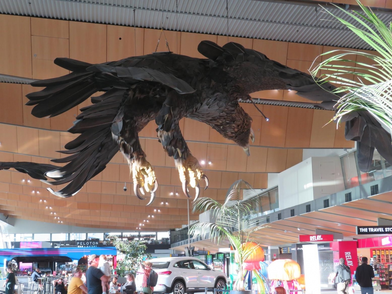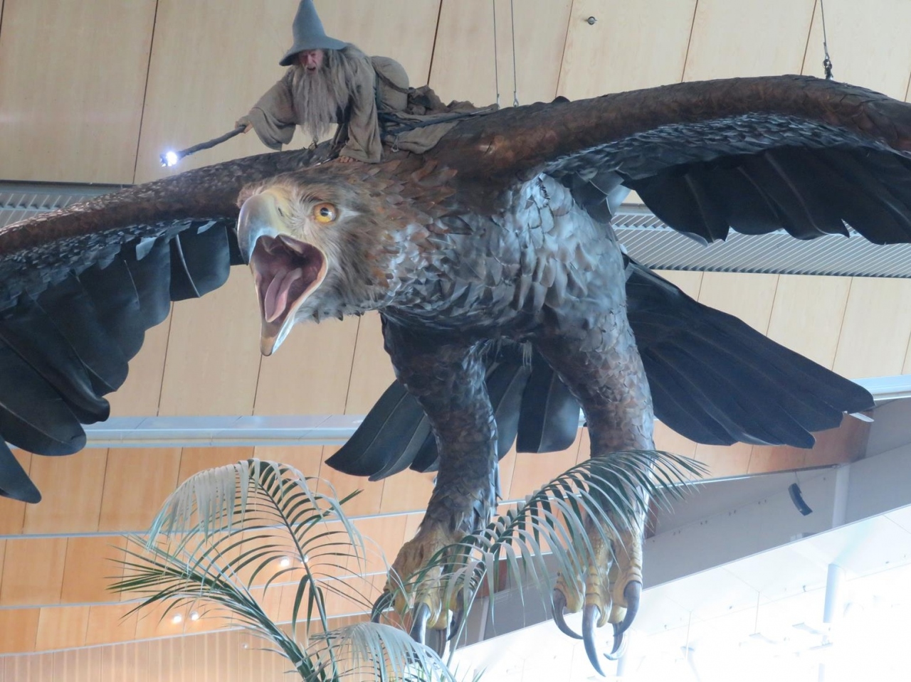 映画の街ウェリントンの空港を意識して、天井からは大鷲に乗ったガンダルフを模したオブジェが吊り下げられ、行きかう旅人を出迎えたり見送ってくれますよ。