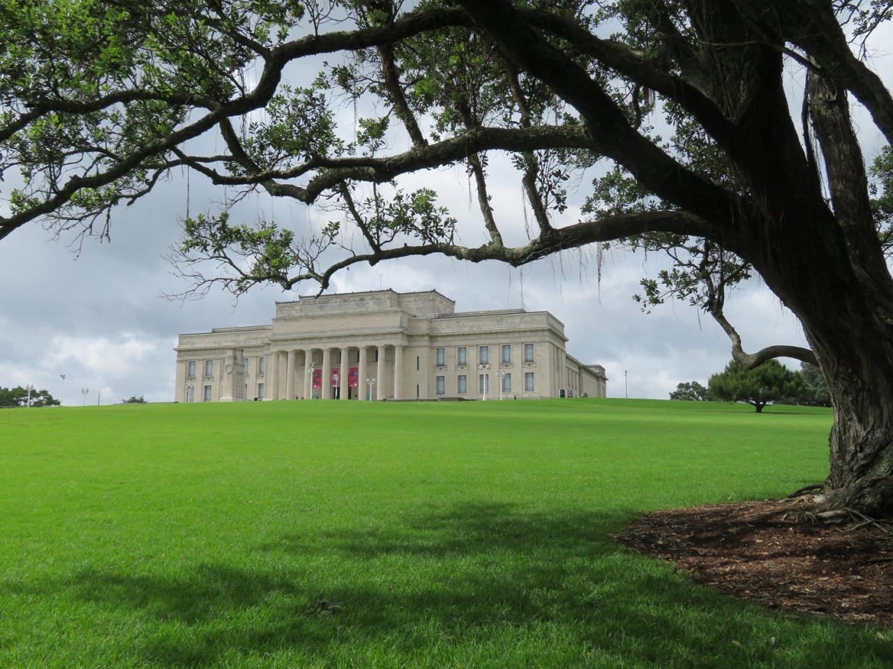 緑濃いオークランド・ドメインの一段と高い場所にある重厚な石造りの博物館。