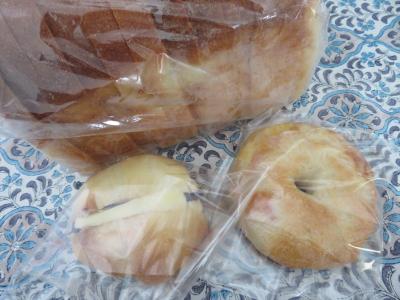 今回は、お気に入りの油脂不使用でざっくりした食感の食パンのほか、ハムとチーズのベーグル、それに新しく人気商品になった餡バターサンドもお買い上げ。