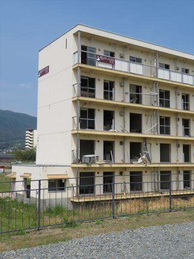 ≪震災遺構 旧下宿(しもじゅく)定住促進住宅≫は周りを柵に囲まれて中には入れませんが、歩いて一周できるようになっています。