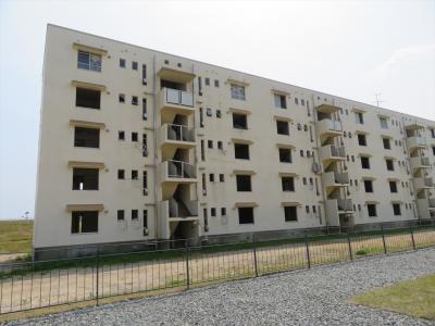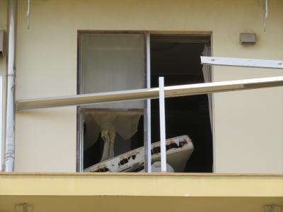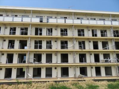 海側(国道45号線側)から見ると、海に面したベランダのカバーが4階までは全壊になって津波が突き抜けて行った様子が分かります。