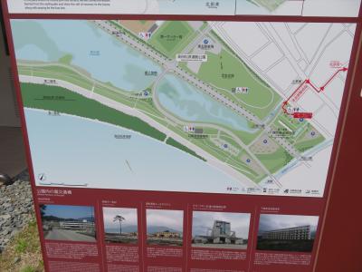 新設されたトイレそばには陸前高田市の震災遺構や災害時の避難ルートを紹介するプレートも出ていました。