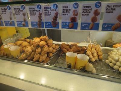 オールド・チャンキー(漢字名は老曽記)は、テイクアウト用の海鮮や練り物、手羽先などの串揚げや、カリーパフ(カレーが入った大きな餃子風の揚げパイ)が主体のお店。