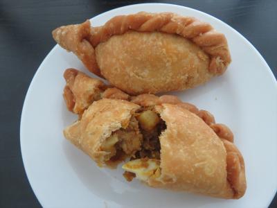 サクサク・ホクホク、ピリ辛!のカリーパフ(カレーが入った大きな餃子風の揚げパイ)がお勧め