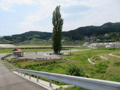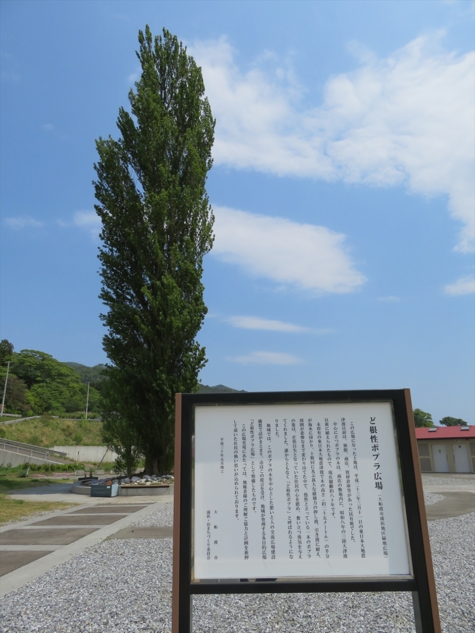 今では≪ど根性ポプラ広場≫として整備された更地にポツンと立つこの木は、高台にある三陸鉄道の三陸駅からも遠望できますが、お時間がある方は近くまで行ってみましょう。