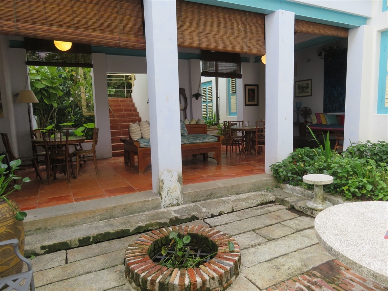 門を入ったところの中庭にも席がしつらえてあってシーシャ(水たばこ)もお試しできます。