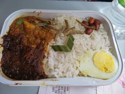 帰りの便のナシ・ルマ(おかず付きのココナツ・ミルクで炊いたご飯)は辛味噌の風味が今一つ。