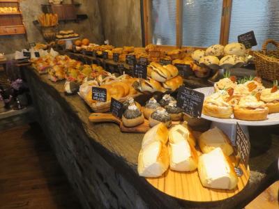 重厚感ある石造りのお店に並ぶパン類は、見た目も中身もたっぷり充実