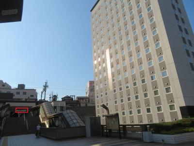 東出口2を出るとすぐそばですが、この出口通路は階段のみなので荷物が軽く少ない人向け。