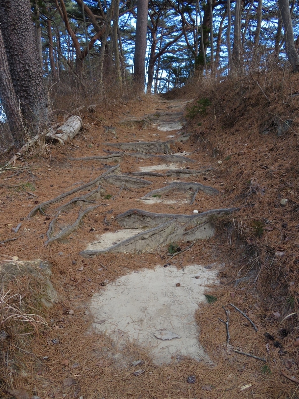 上り始めは木の根っこが多少ゴツゴツした遊歩道でもすぐに平坦な道になり、距離的には200m程。
