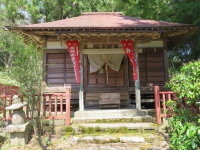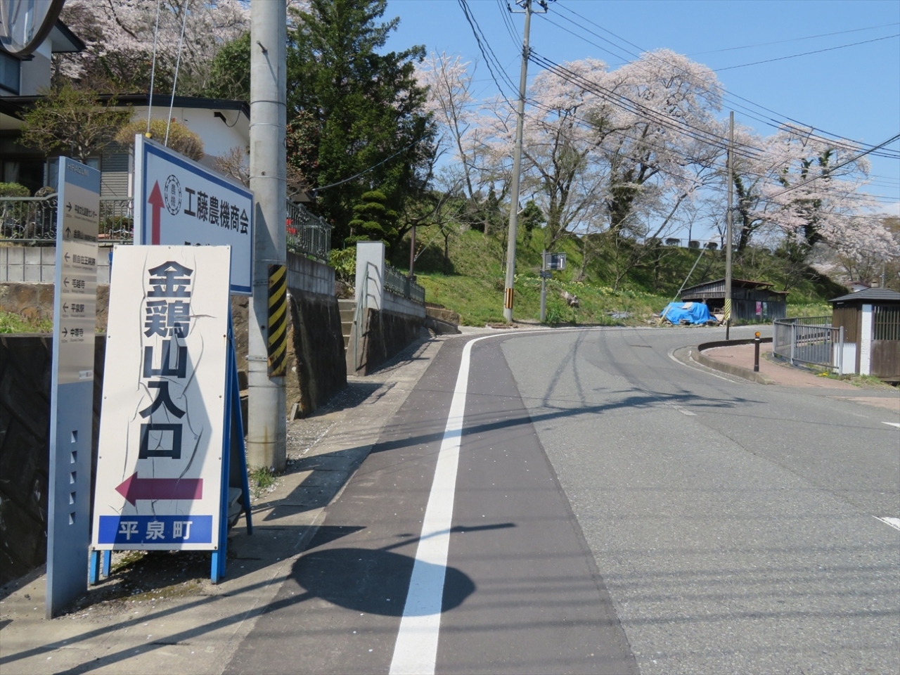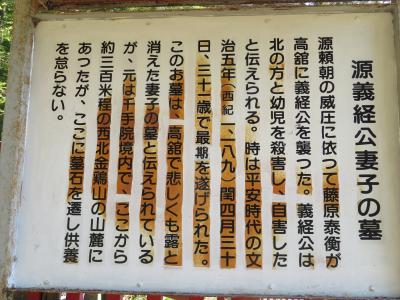 千手堂手前にはウォーキングトレイルの標識があり、≪金鶏山頂上200m≫、≪義経妻子の墓50m≫とも出ているのをお見逃しなく。